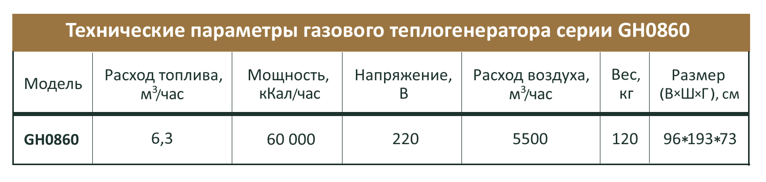 Теплогенератор газовый непрямого нагрева модели GH0860 предназначен для отопления больших полуоткрытых и открытых пространств, таких как: теплицы, сельскохозяйственные и животноводческие комплексы, склады, ангары и производственные цеха.