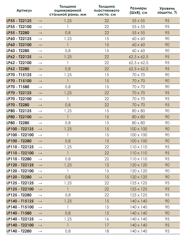 Светозащитные материалы изготавливаются из пластиковых пластин различной толщины и оцинкованных корпусов.